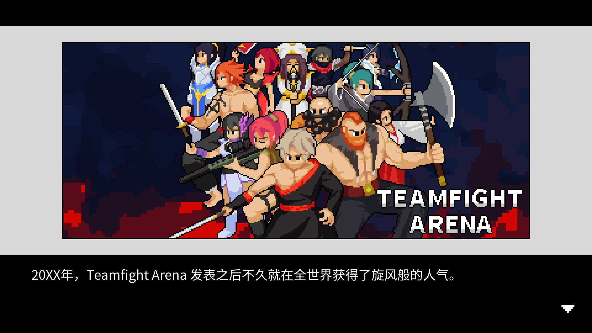 主页本身就是一个显示屏,屏幕里有各种各样的像素小人在互相战斗,每当有一批战士死去随后又会出现一大堆新角色,活脱脱一个修罗场。
