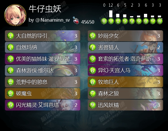 牛仔虫妖看似成本很高,不过其中使用的虹卡都是目前轮换模式中很实用的牌,合这一套其实是不亏的,即使是大赛结束之后也可以拿类似的构筑去打轮换。起手留牌也比较接近自然版本的牛仔妖,留妙厨少女、荒野中的憩息来保证0费树,还有洛奇萨斯,追求5费准时的爆发。