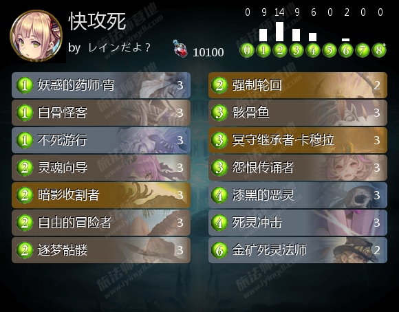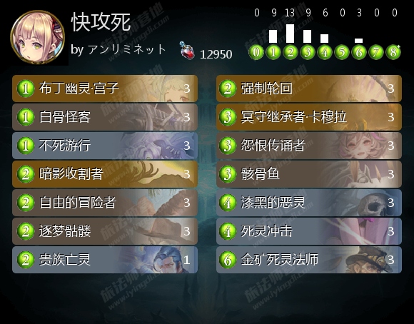快攻死一直以来的优势在于便宜。但是在如今轮换死灵式微的情况下,它还能算是一套实惠的卡组吗?不过,打过上一次大赛的朋友大概也早就合好了一套快攻死了吧。而且这套卡组玩起来也比较简单,没有复杂的combo,留牌也只需要追求打满节奏即可。个人推荐没有入坑无限计划的玩家结合自己手头的资源,合一套廉价快攻用来应付大赛,除了快攻死之外,快攻鬼也算是一个可行的选择。