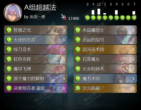 超越法也是老牌构筑了。源于魔力的复制和魔术术师算是对这套卡组最朴素的额加强,前者让超越法更容易触发半数,后者则可以在获得了足够的增幅减费之后再去。这些加强让超越法更容易在6费开门。而且超越法也不需要单回合的复杂操作,只需要保证起手时能够有高费有低费不要断牌即可。