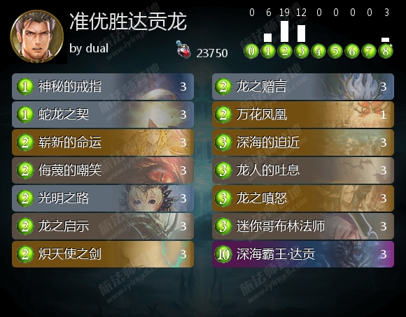 由于荣华教这种会携带防守牌的卡组流行起来,达贡龙在无限环境里会非常被动。但是比起能力更全面的佐伊达贡龙来说,迫近达贡龙的操作难度几近于0。
