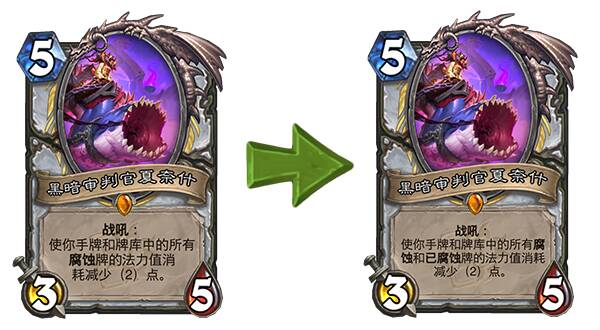 考虑加强黑暗审判官夏奈什,让已腐蚀的牌也能减费吗?现在这样也太弱了,加强一点不过分。