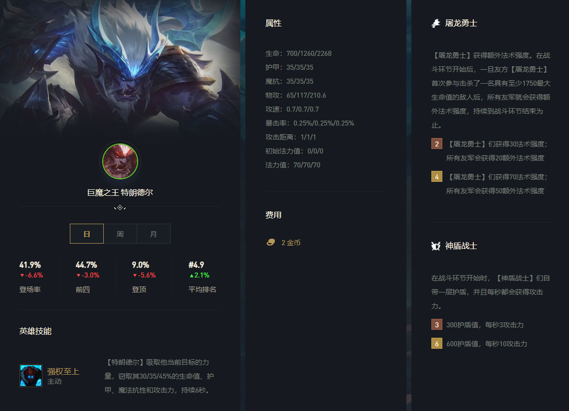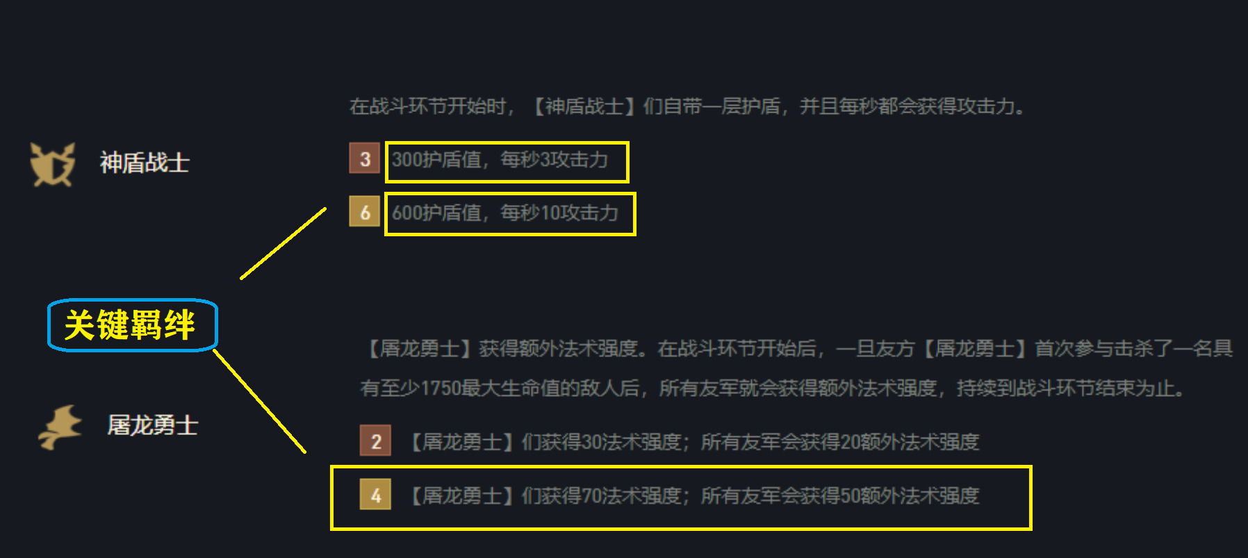 阵容运营关键羁绊:3/6神盾+2/4屠龙。阵容双C武器、巨魔。