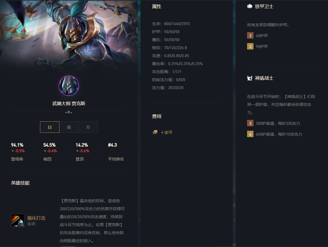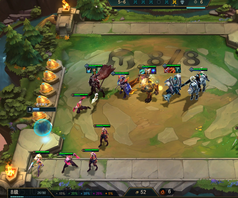 后期运营:来到5阶段这时候,砍巨魔数量,如果差1-2只且血量较高就可以搜下,3星再拉8人口,如果差的多就直接拉8人口,上皎月,如果阵容有鸟盾可放弃6神盾上3神盾挂盖伦+泰坦,增强前排坦度。