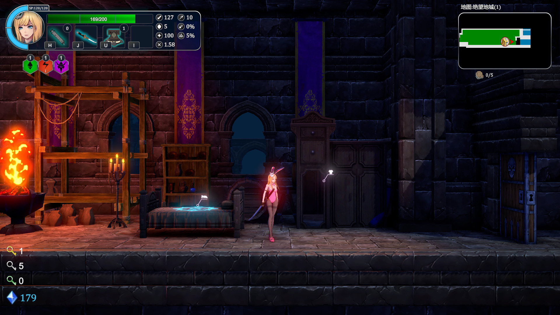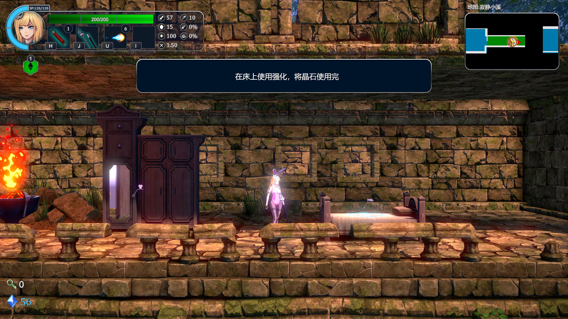 这间屋子将是艾尔莎今后的休息点,她可以在这里休息存档换装(这多正常),恶魔在床上放了传送点,方便她去以前去过的地方。