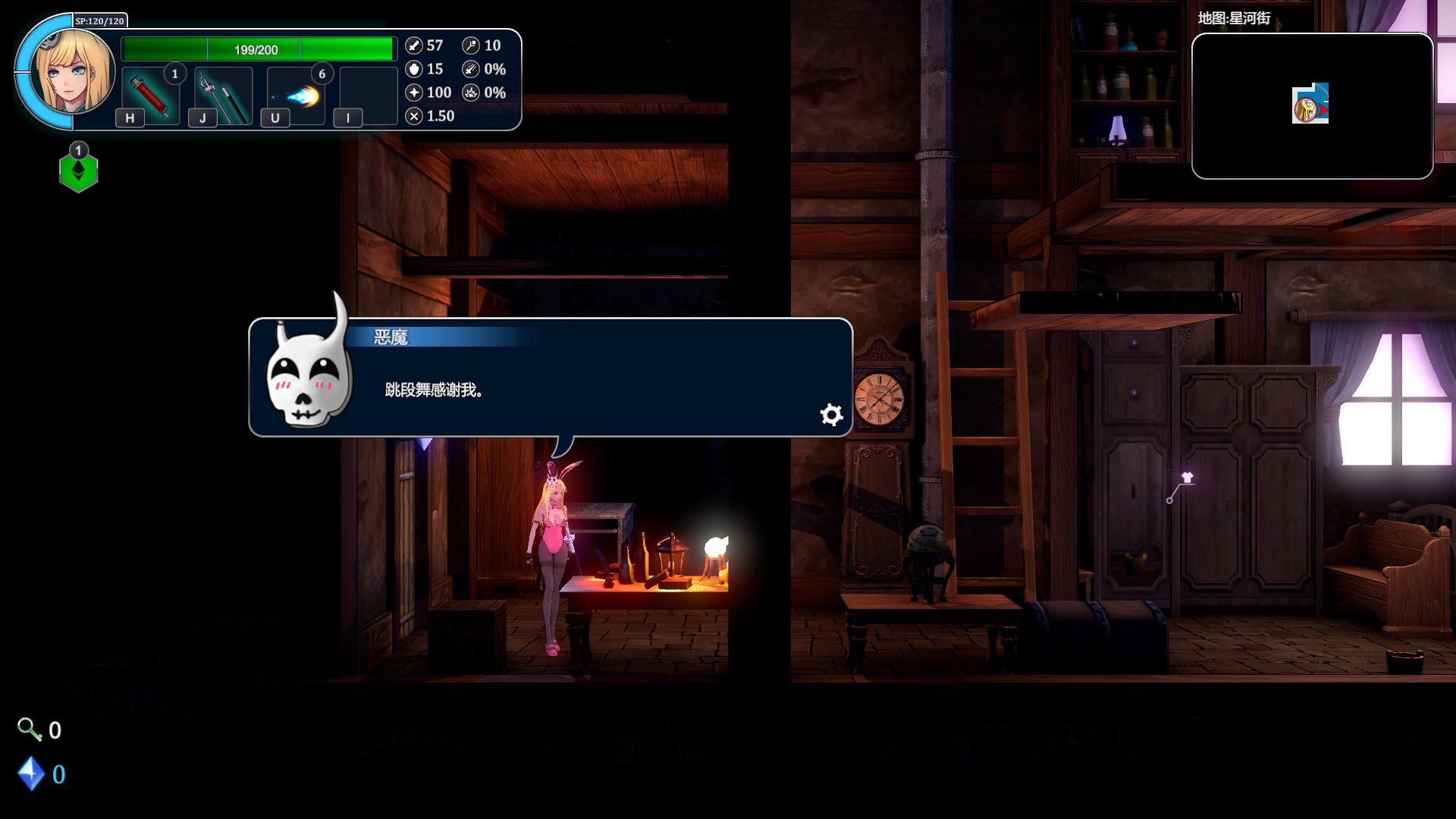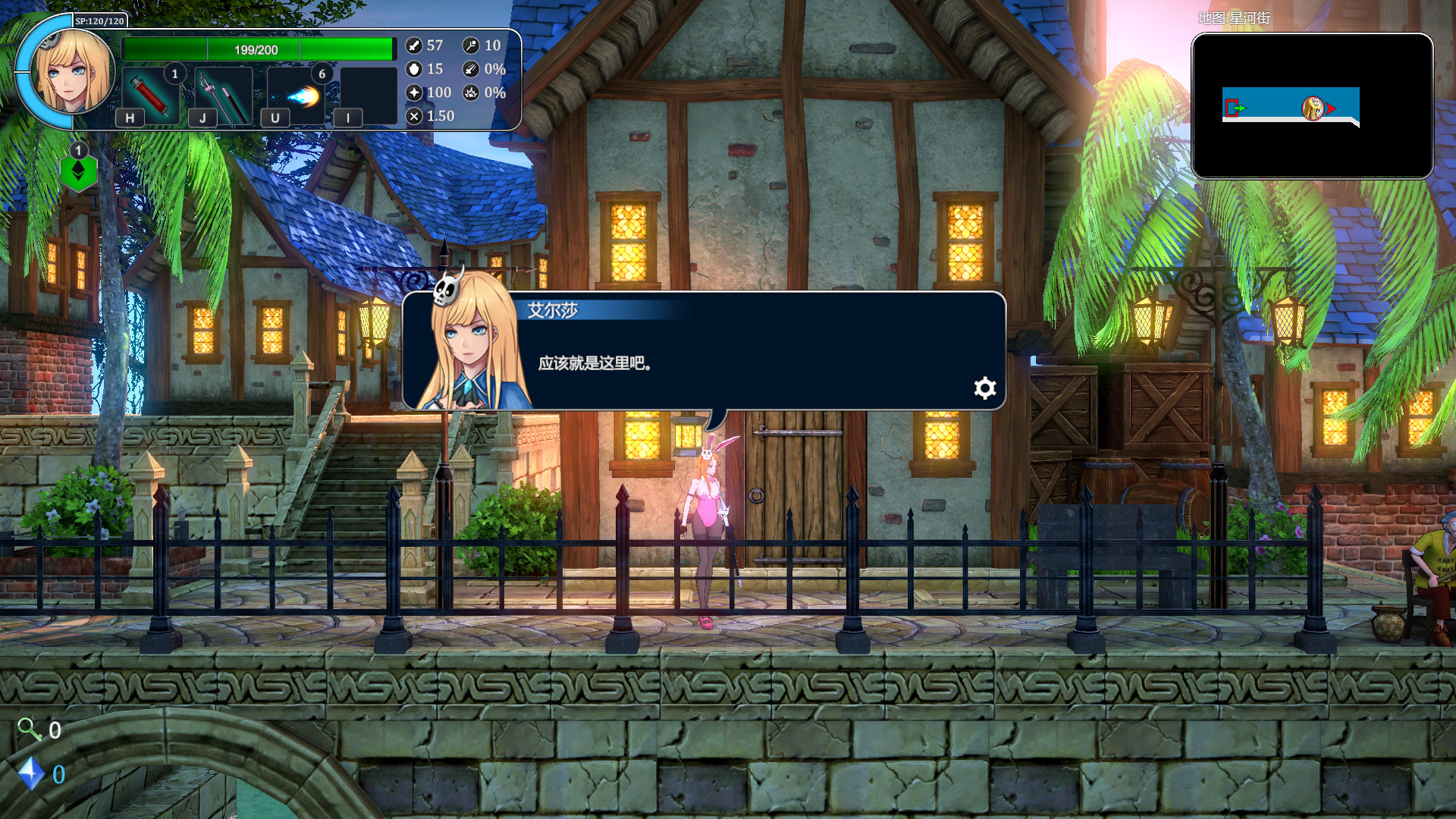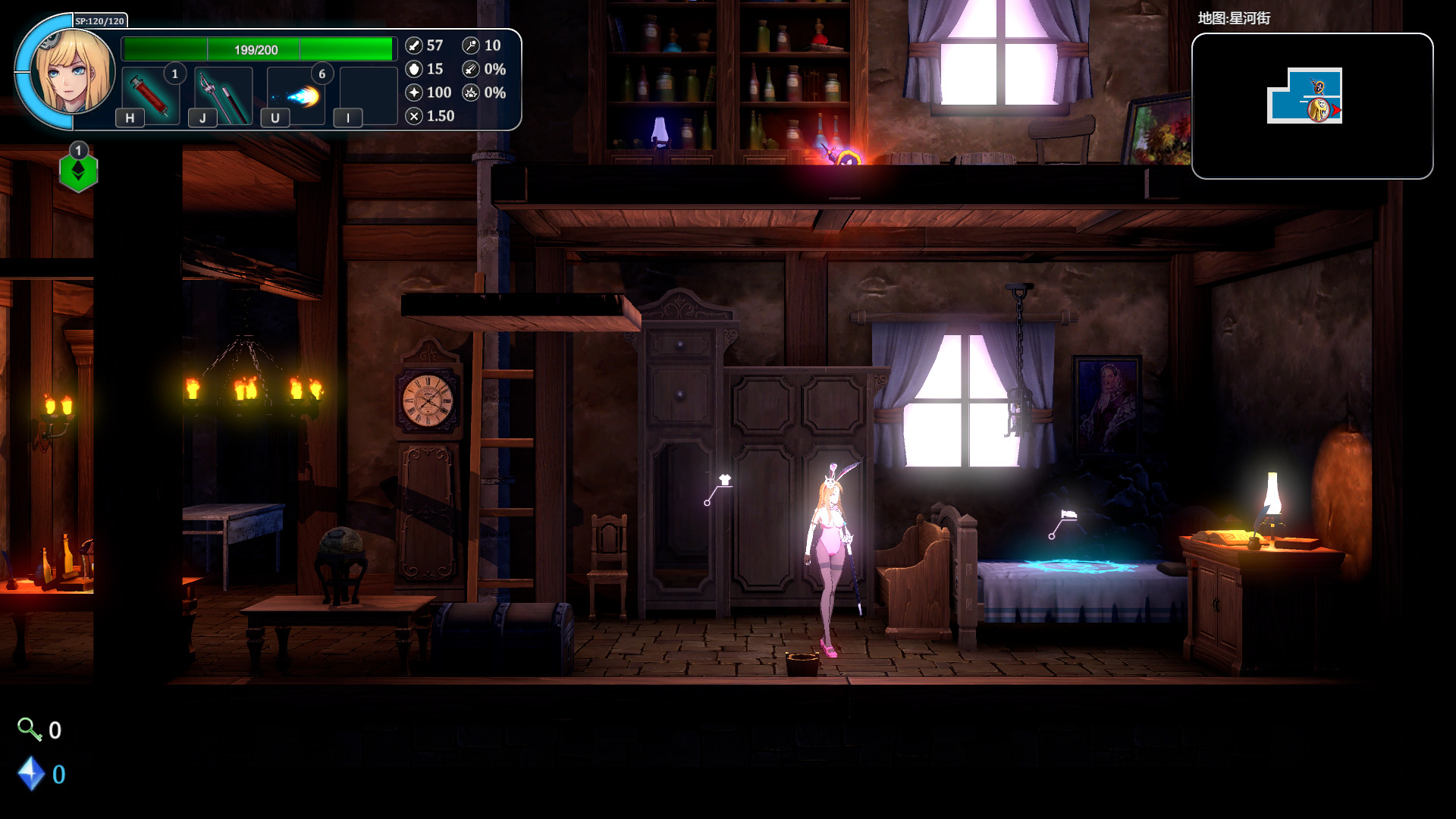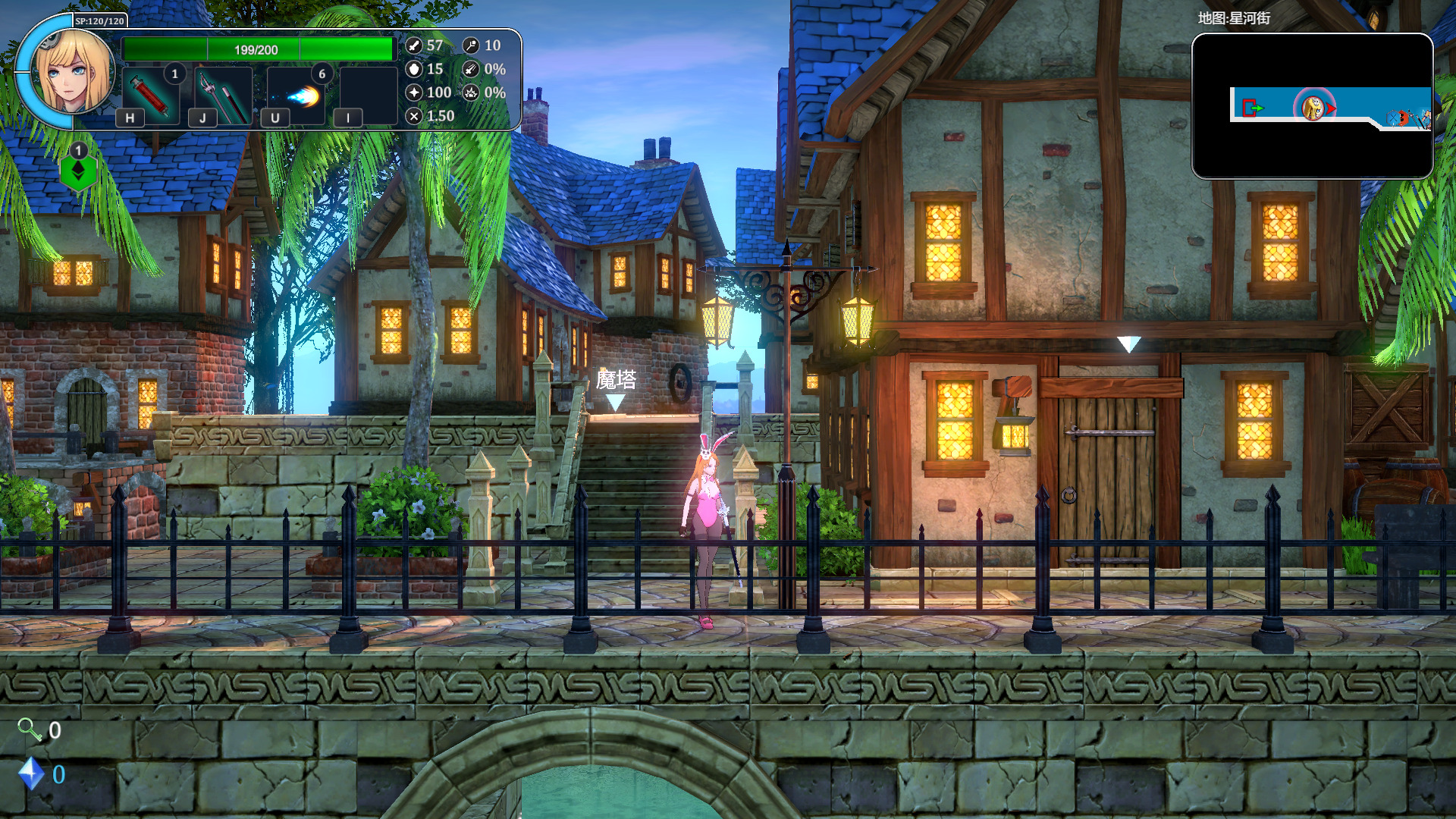 随着剧情推进,女主还没到魔塔,于是先去了一个叫星河街的地方租了间房子。
