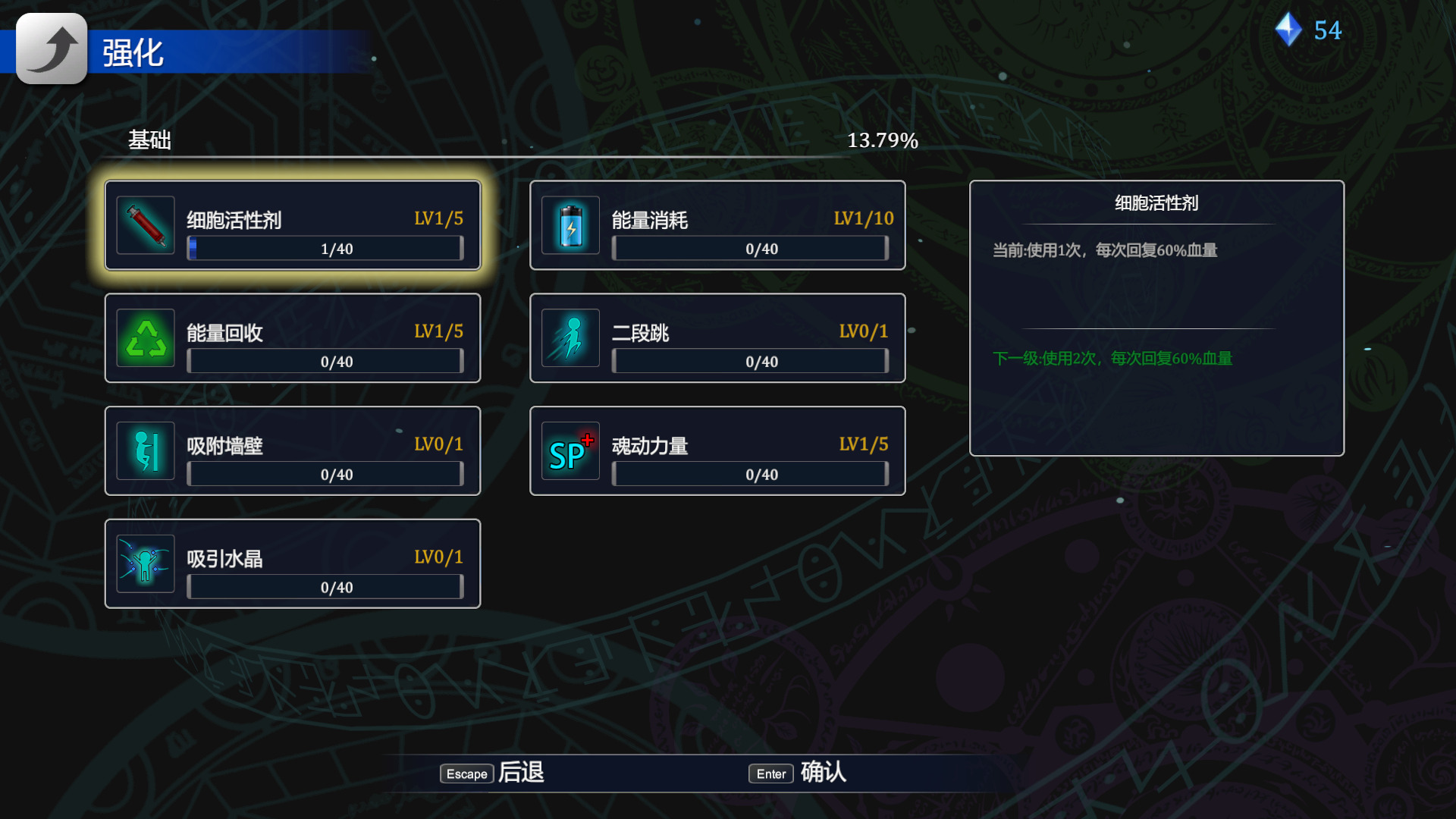 晶石是这个游戏的货币系统,使用它来强化女主,除了基础属性还能学会新技能,比如二段跳,蜘蛛居和人形磁铁等等,可以强化的点非常多。