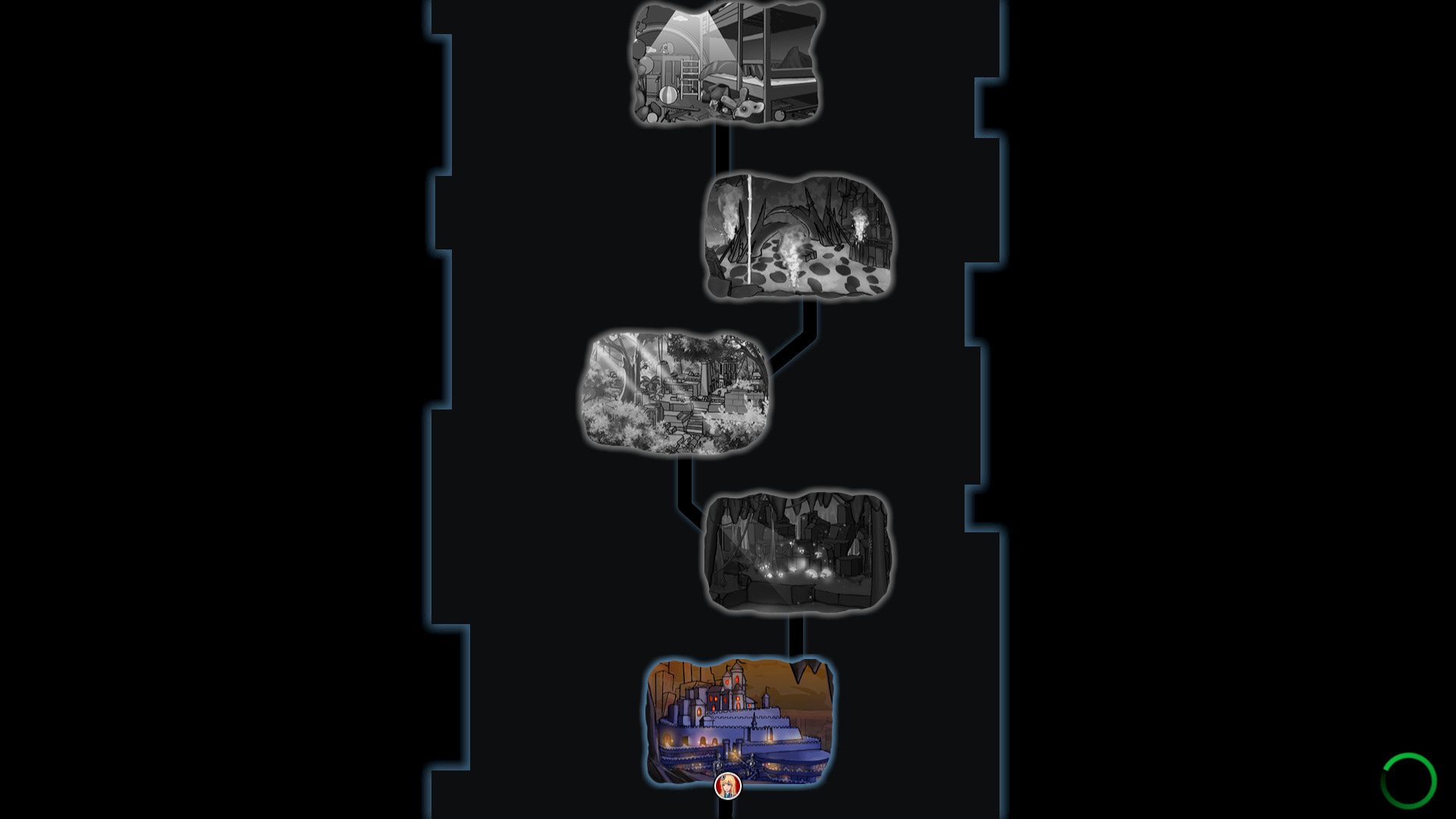 普通模式,即常见的恶魔城设计,在不同的地图中探索,不时有存档点。