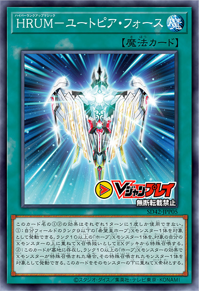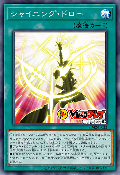 ①:以自己场上的1只9阶以下的「希望皇霍普」超量怪兽为对象才能发动。从额外卡组把1只10阶以上的「霍普」超量怪兽在作为对象的自己超量怪兽上面重叠当作超量召唤特殊召唤。