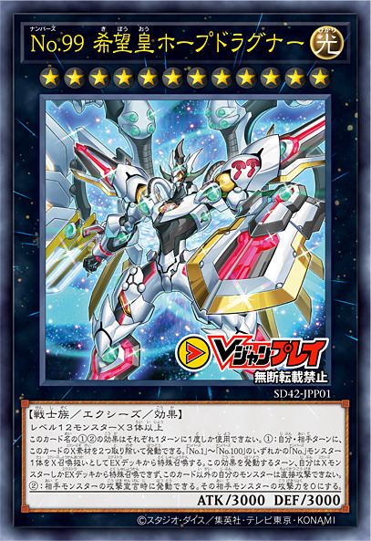 编号.99 希望皇霍普德拉古那 光/12阶 战士族/超量/效果 3000/3000