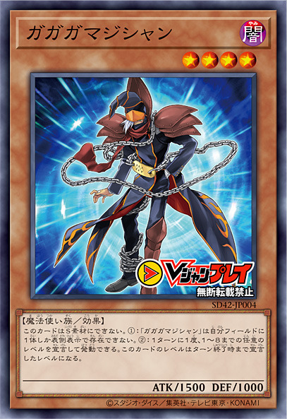 1回合1次,自己的主要阶段时宣言从1到8的任意等级才能发动。直到结束阶段时,这张卡的等级变成宣言的等级。「我我我魔导」在自己场上只能有1只表侧表示存在。这张卡不能作为同调素材。