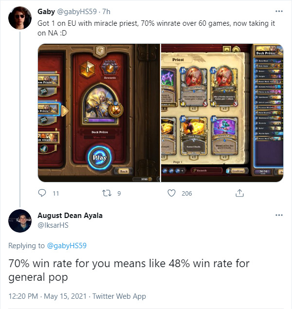 Iksar:这个问题带有很强烈的主观性。我们是有一个电竞团队的,我们举办过锦标赛、联赛,有转播,很多活动在全世界很多地方做了很多年。实际情况是,炉石做电竞的意愿显然是有的且直接的(“So in a literal sense, there is obviously direct intention for Hearthstone to be an esport”)。而问这种问题的人往往心里已经有预设的答案了,往电竞体系里投的资源到底得达到多少才算数。