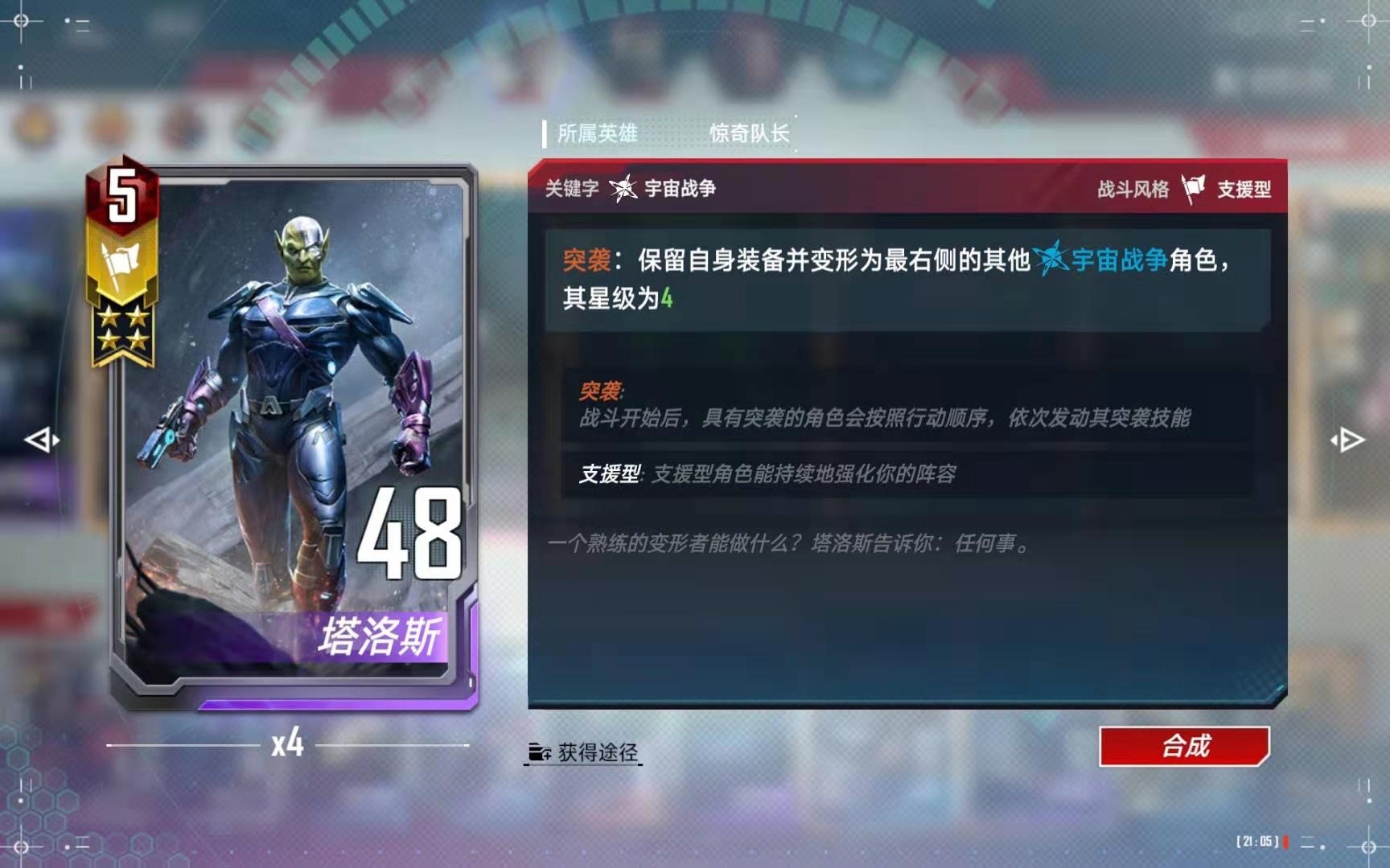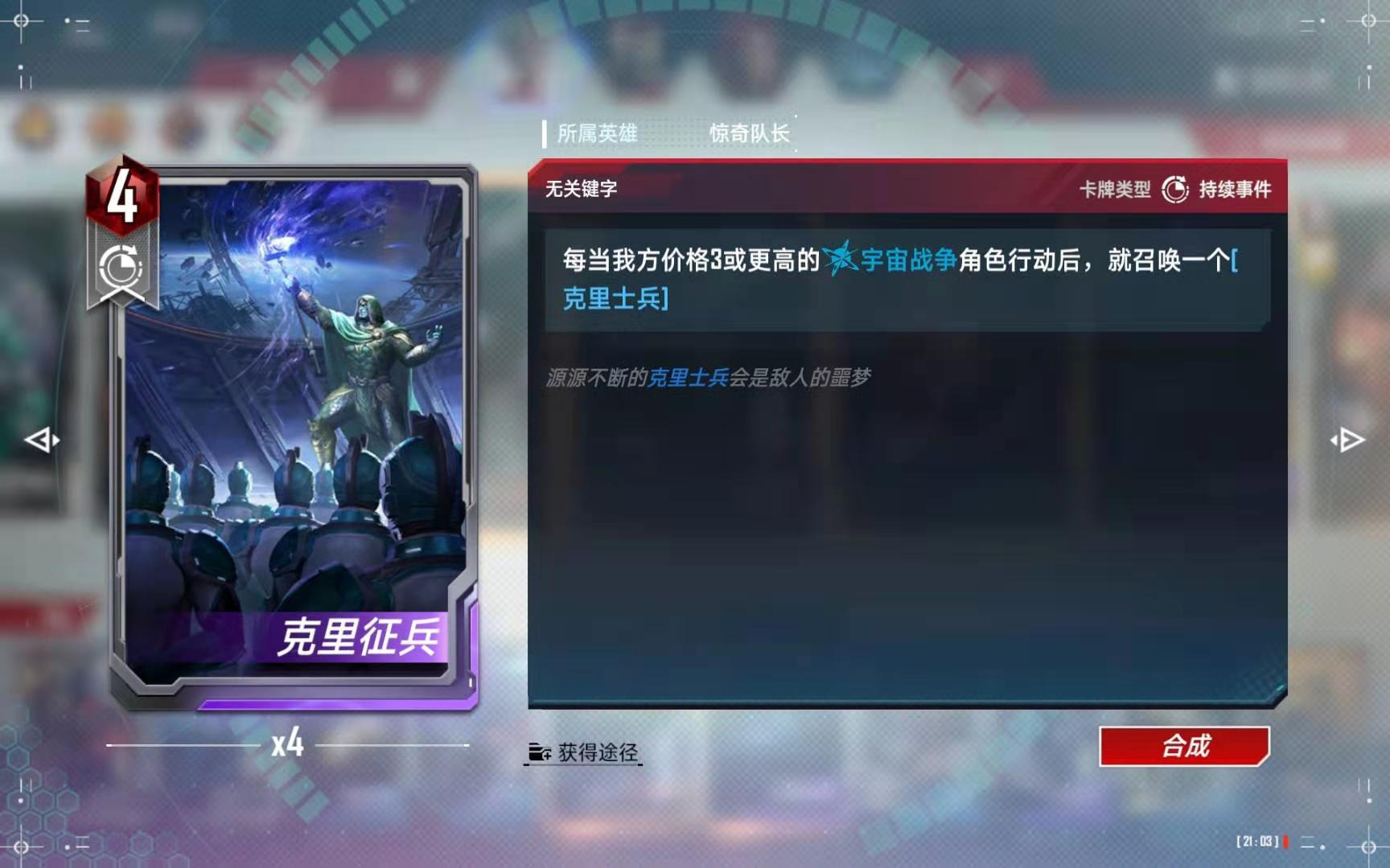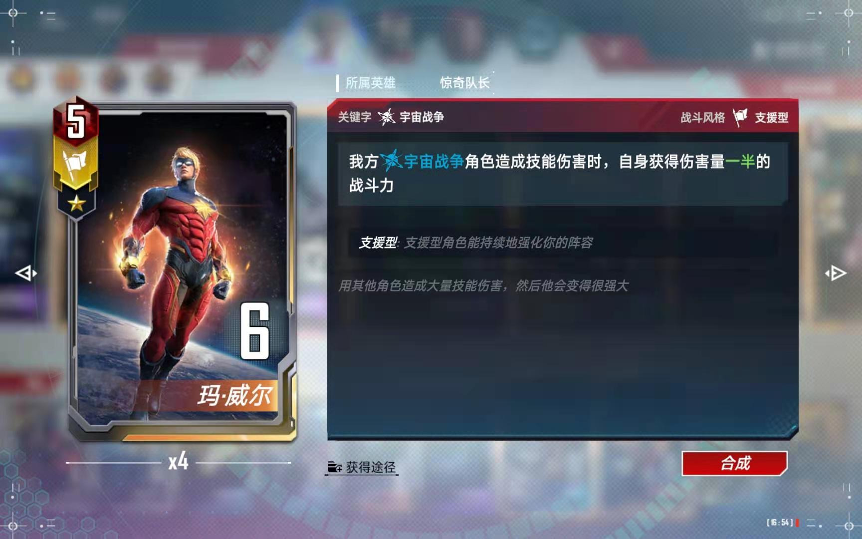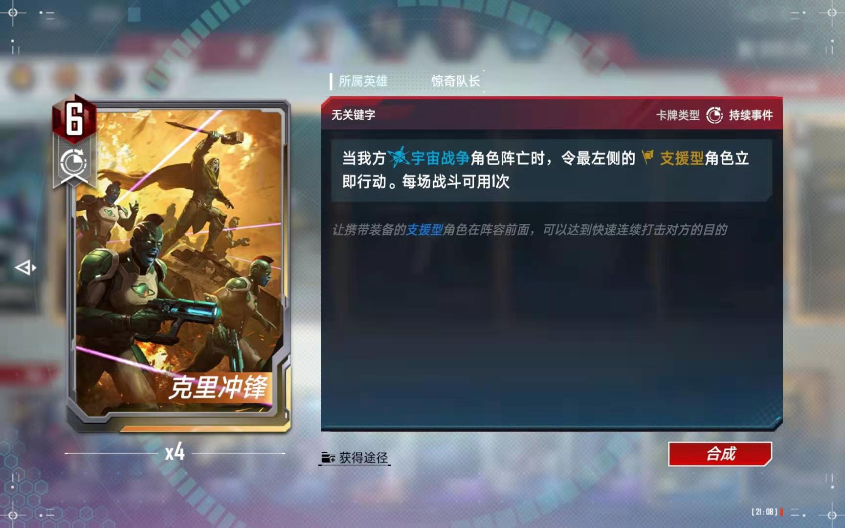 2、惊奇力量:主动:选择一个1星的“宇宙战争”角色+1星级。只能使用一次。