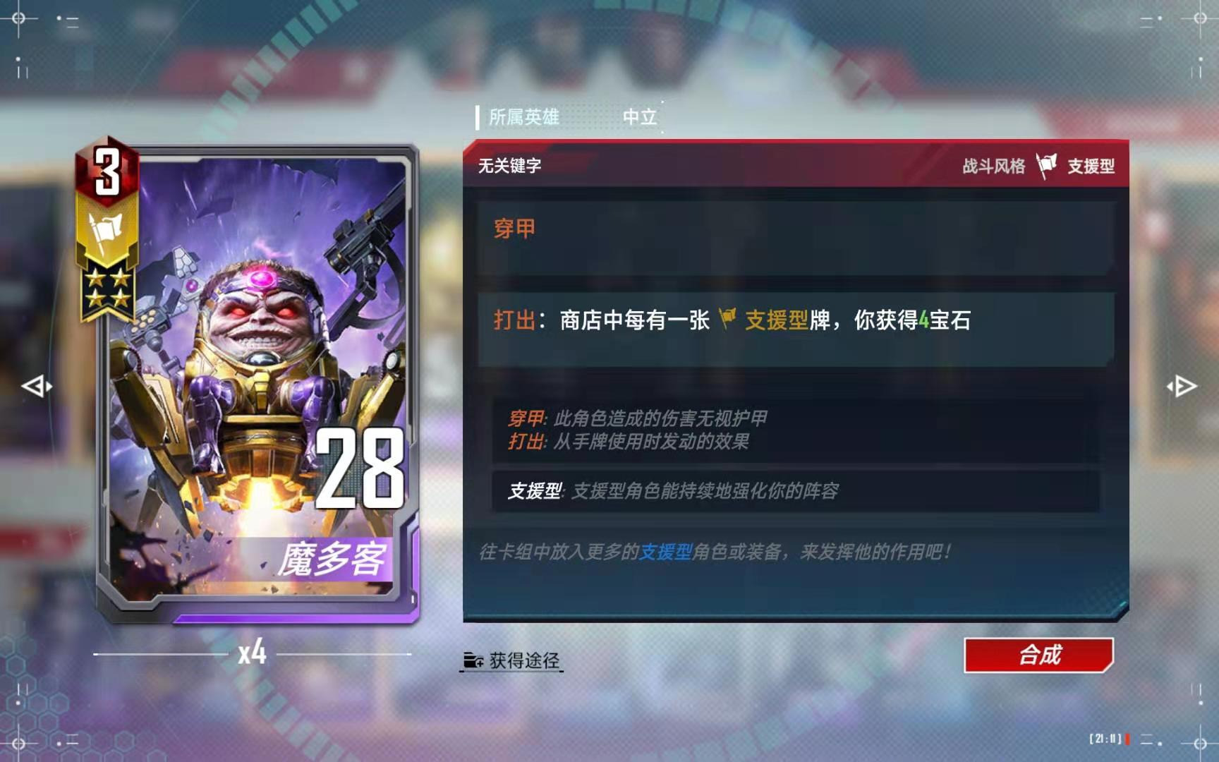 9、在六级商店可以使用并肩作战继续找本卡组还没升级为四星的卡牌,尤其是第四张托尼、第四张摩多客;在并肩作战的作用下,六本实际上找到关键牌的概率翻倍了。后期使用高星月亮石填充剩余卡位。