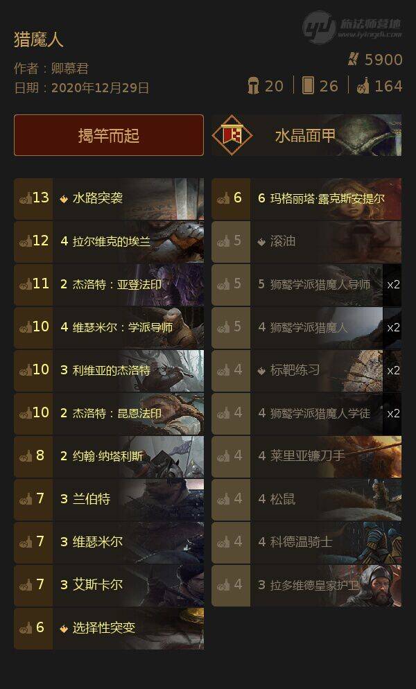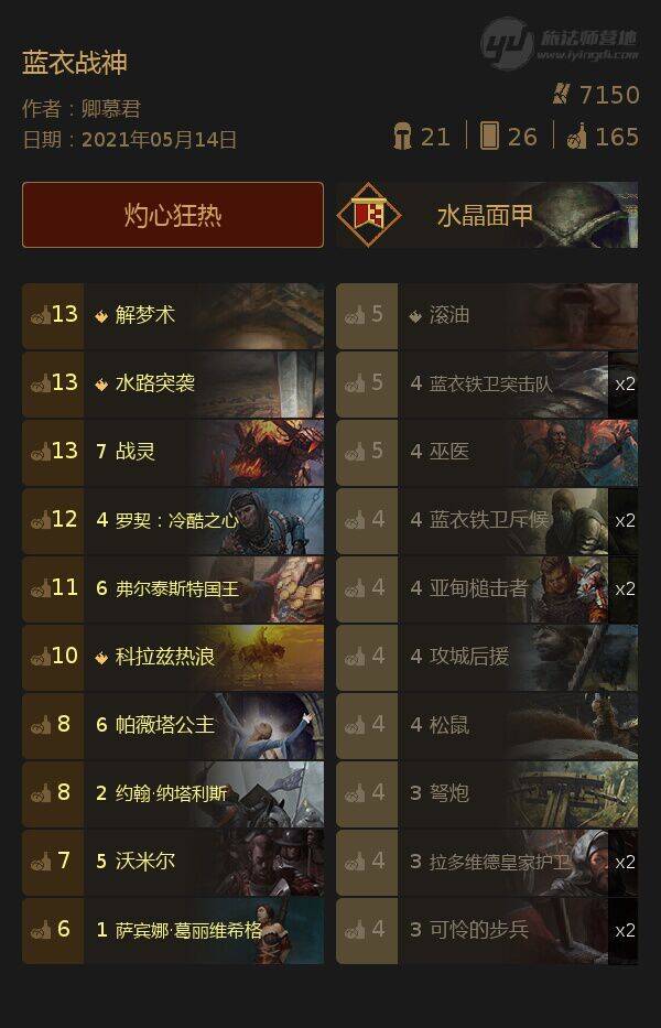 效果都不太理想,最后尝试构筑了一套天梯中遇到的蓝衣,经过改进得到现在的卡组。
