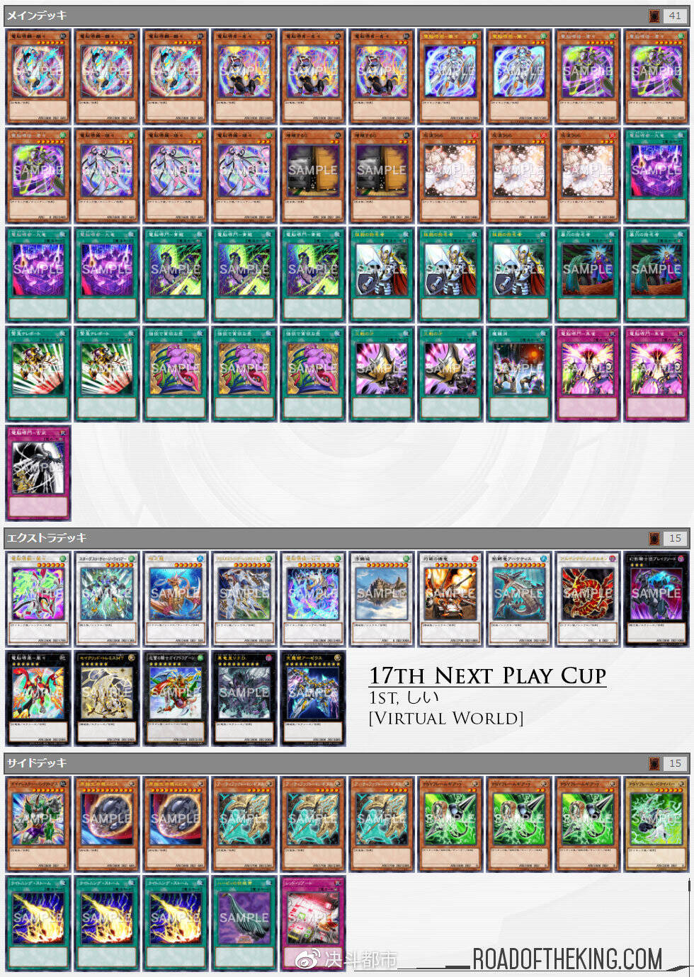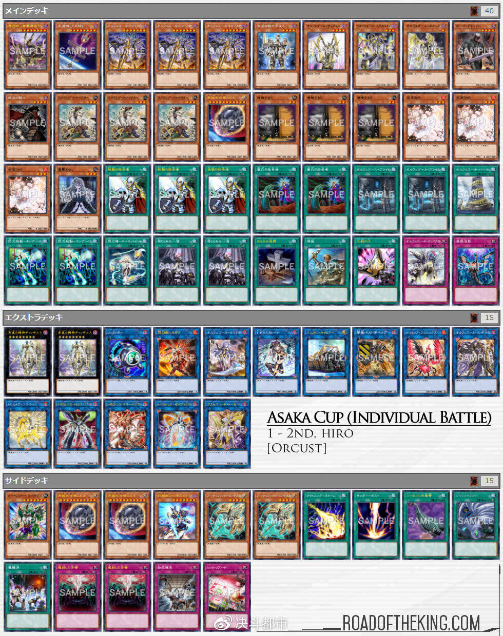 しい使用和上周一模一样的卡组构筑,一张卡都没变动。在卡表公开后没有讯息优势的情况下,他仍然继续夺冠,有可能意味着这卡组已经达到了最佳优化的构筑。