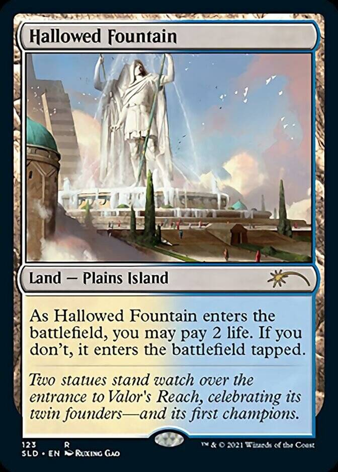 正如秘室珍品中崇圣喷泉背景叙述所说,英勇巅最受欢迎的比赛为双人组队。而竞技的目的也并非一定要结果对手,用属于自己的战斗方式赢得观众喝彩更为重要。英勇巅的战斗场地会不断发生变化,火线齐心的五张基本地清楚地展现了这点,这次秘室珍品的崇圣喷泉也为勾画英勇巅全貌填上了一笔。