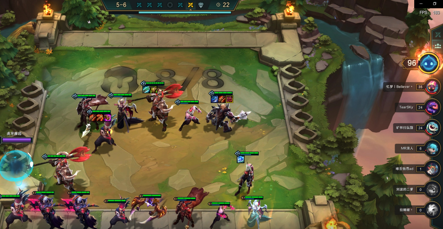 来到5阶段,摩昂直接拉8人口,没有继续在7级追3星亚索,经济好,血量高,摩昂选择在在8级追三星亚索。这里提醒下大家这时候如果遇到骑士天使阵容特别是6骑士,可考虑留诺手换莫甘娜,破甲还是很重要的。