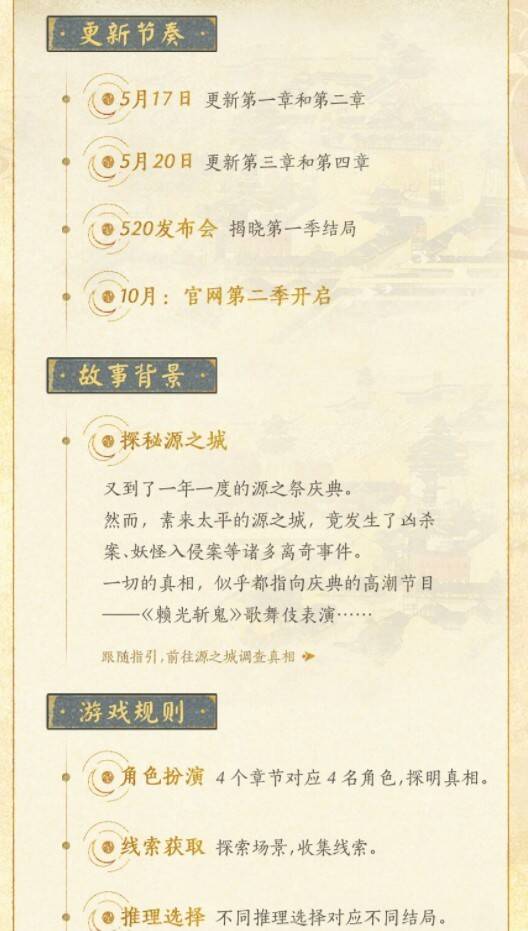 网易官方今天为官网更新了第一章、第二章的内容,后续剧情将于5月20日更新,另外网易也表示会在520发布会上公布第一季的结局。感兴趣的朋友可以移步官方网站查看更多详情。