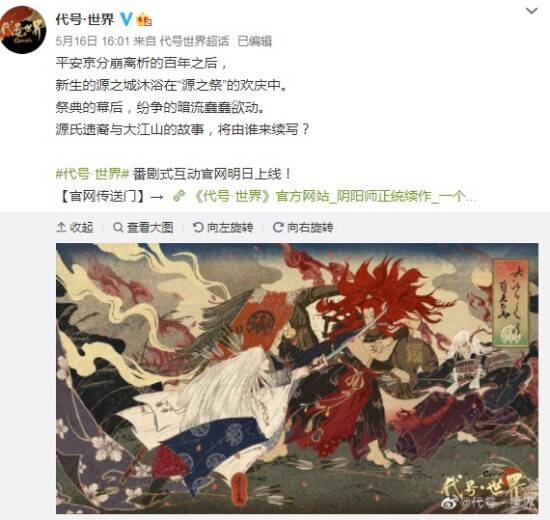 网易官方近日上线了《代号·世界》官方网站,官方微博也已于近期开通。根据官方介绍,这款作品是“《阴阳师》重磅续作”。