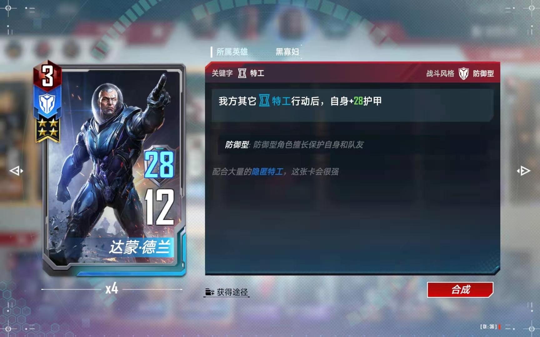(4)实际上,除了黑寡妇和达蒙之外,其他的特工单位基本上不用升星,一星佩戴对应的武器足够了,卤蛋也只需要两星,不要乱花钱合成四星。钱尽量花在黑寡妇、达蒙、苏队上。