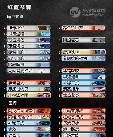 总之任何情况下我们都要确保能连续下最少3张地,第四张地时有红蓝两色。节奏套牌顾名思义,节奏是第一位,如果连法术力基础都打不好,何来节奏?