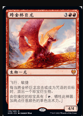 如果对方使用咒语指向跨金桥巨龙,一定,一定,一定要先结算出珍宝,再反击咒语,否则你会在反击对抗中少两点法术力。