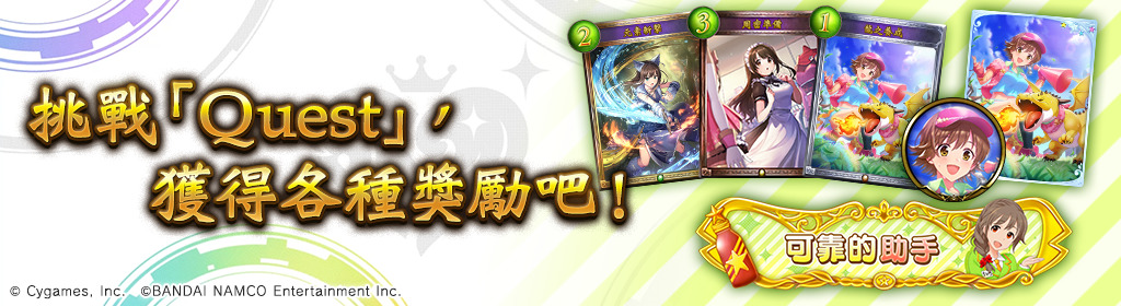 于Quest中,将设有「共通」及各个「对战对手」的Quest任务,并且在活动期间内仅能达成一次。