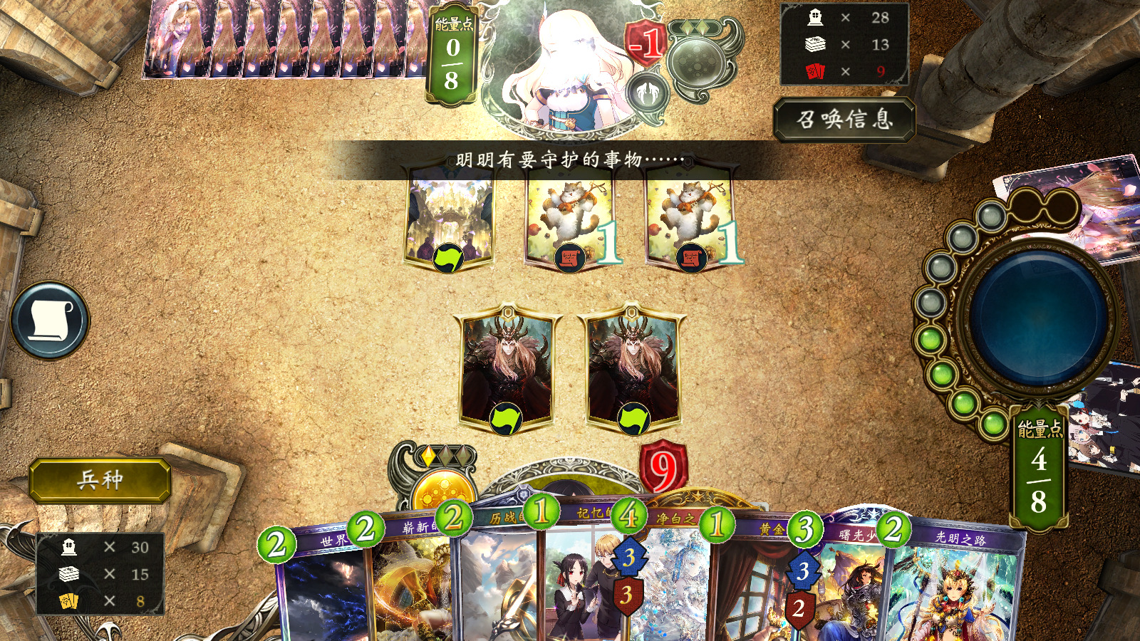 优先将崭新的命运留到第6回合以后使用。但如果前期没有合适动作(具体见下),且手握光明之路,可以在前期使用新命。尽量不要直接使用光路,除非无事可做。