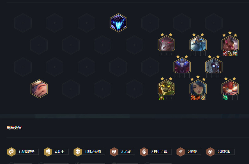 阵容运营关键羁绊:3/5龙族与4斗士。阵容主C寒冰,副C大头、瑟提。