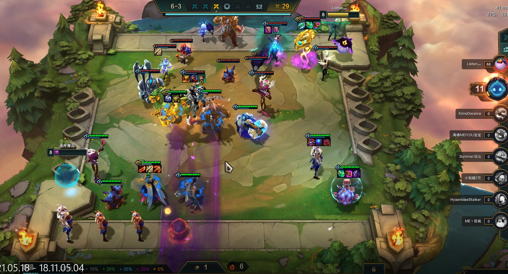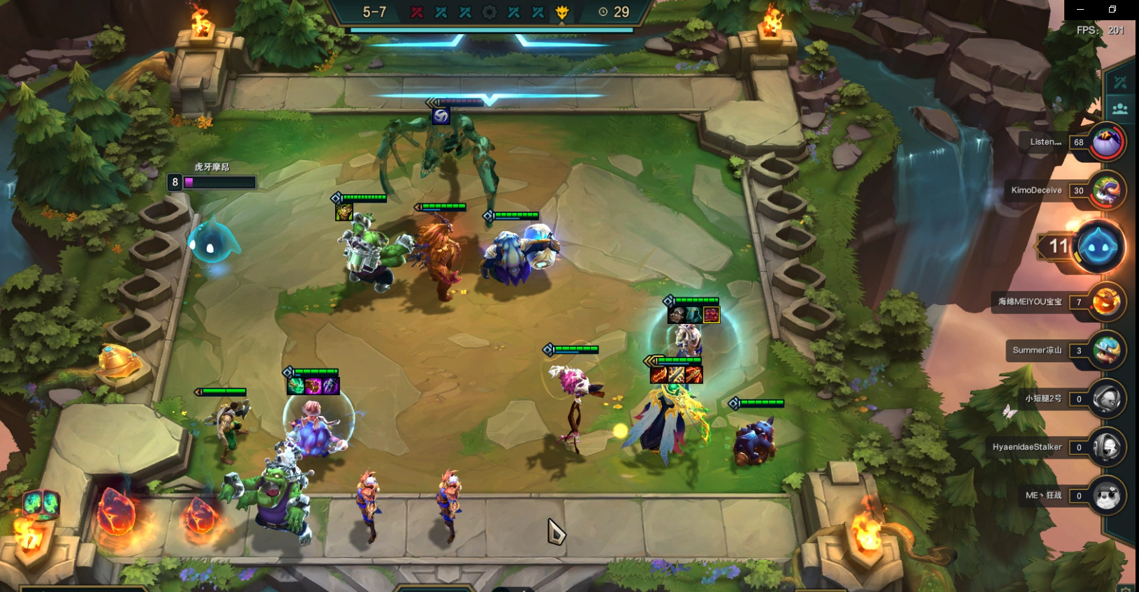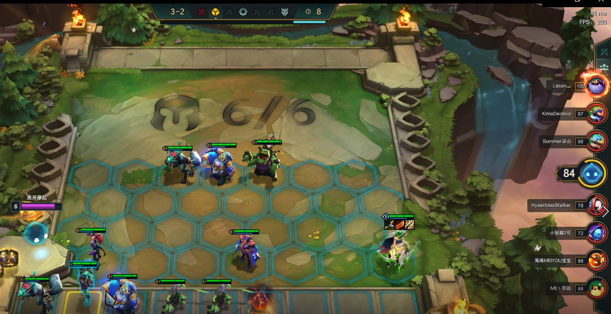 来到5阶段,如果4阶段没啦8人口,这时候一定要上8人口,开始搜卡找到大头,和追寒冰三星。摩昂这局是在5-2用了一个金色龙蛋出的妮蔻追出3星寒冰开始锁血,直接卖掉多余2龙上游侠与复生2人组。开始吊打武器、铁男、亚索等物理输出阵容,开始连胜,由于对局节奏略快在5阶段野怪的时候已经走了3家,我们是唯一冒火的。