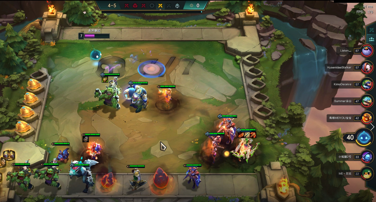 来到4-1阶段,拉7人口添加游侠棋子(4斗士+艾希+维鲁斯+婕拉),之后看我们的阵容棋子情况考虑是否搜卡,如果4斗+寒冰均2星可考虑攒钱准备上人口,如果质量较差,如摩昂这局瑟提一直就是不来,不搜卡就是等死。4-5龙蛋开出的第一只瑟提(我整个4阶段卡30块就是在D瑟提,一张不来),血量已经过半,非常不健康,摩昂就选择上了5龙,这也是一种对赌办法,金色龙蛋金币多,还可能出妮蔻与装备。正常节奏对局如果血量高,经济好在4-5左右啦8人口了可考虑上5龙贪2波金色龙蛋,正常对局基本不建议,3龙够了非常影响寒冰输出。