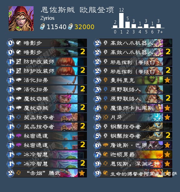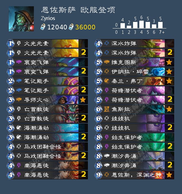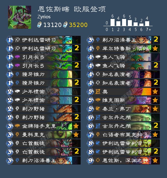 Zyrios的这一堆恩佐斯卡组……我也不知道到底厉不厉害。他应该是压了一大堆胜场,然后时不时会搞个不一样的玩两把,所以除了我标注他“认真玩”的恩佐斯骑之外,别的卡组权当看个日报吧。