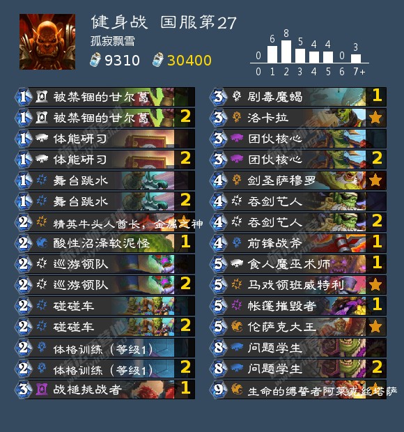 在失去螃蟹骑士之后,健身战的前中期压制力显著下降,这导致现在的健身战又开始适当降速,前锋战斧重新回到了健身战的核心框架内。这样做的另外一个好处是显著提高了对上牧师时的胜率,因为慢打的健身战在对上牧师时对于前期攻势的要求并没有那么高,完全有在中后期靠质量和伤害量结束战斗的可能。