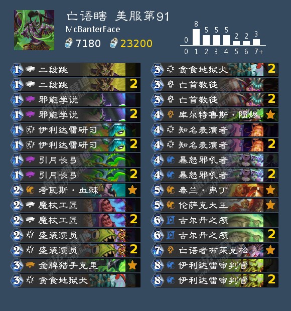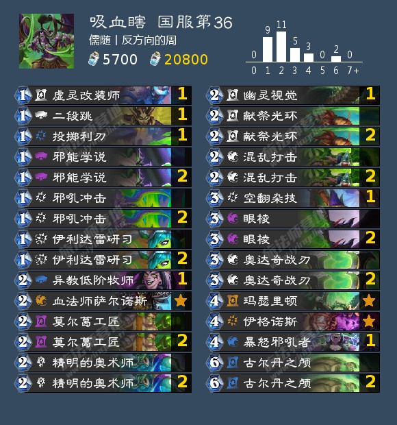 古尔丹堪称本次补丁最无辜的受害者,莫名其妙地天梯上就多出了一堆绿绿的职业,用着自己的头减费的牌打烂了自己的头······而且更要命的是,牧师还变少了;而且更更要命的是,自己的最强前期解牌狂乱还被削弱了。