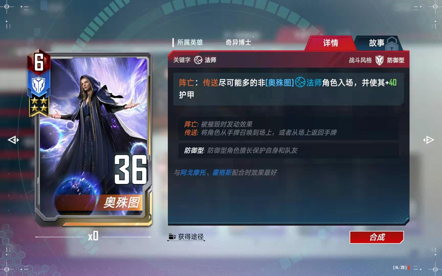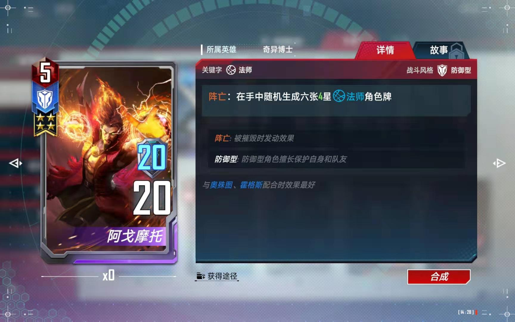 卡牌分析:法师一般不会专门为了四本这张卡去升星,五费的古一和六费的博士实在太强了,这张卡应有可能可以进法师构筑,有待开发新的打法。比如和阿戈摩托还有奥殊图配合。
