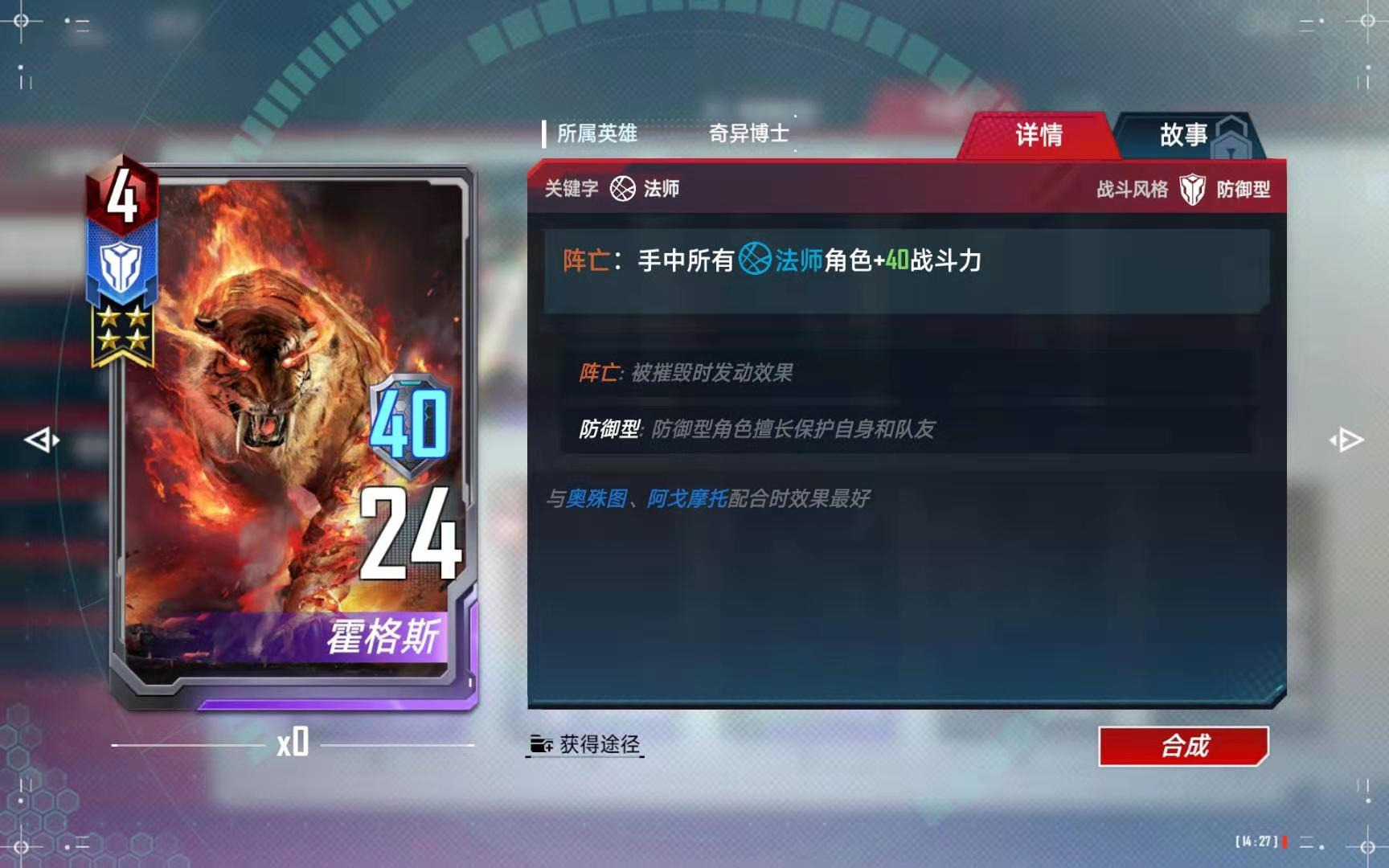 (3)霍格斯:阵亡:手中所有的法师角色牌+40战斗力(四星);