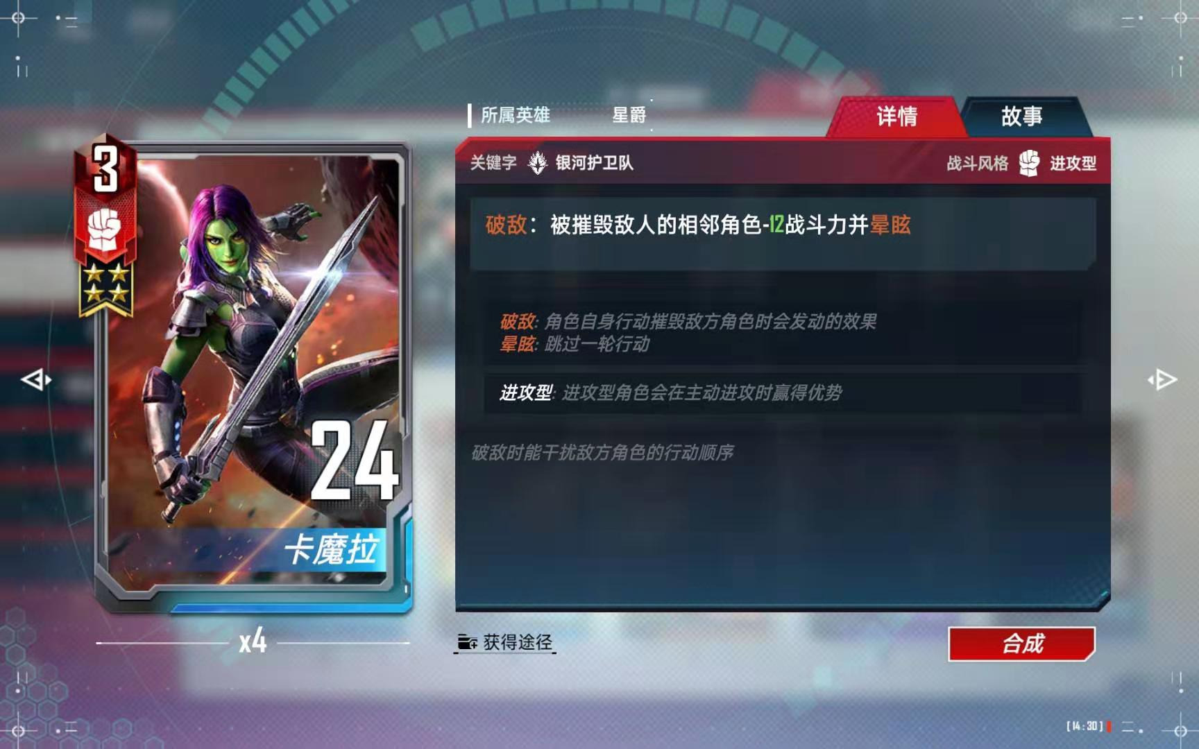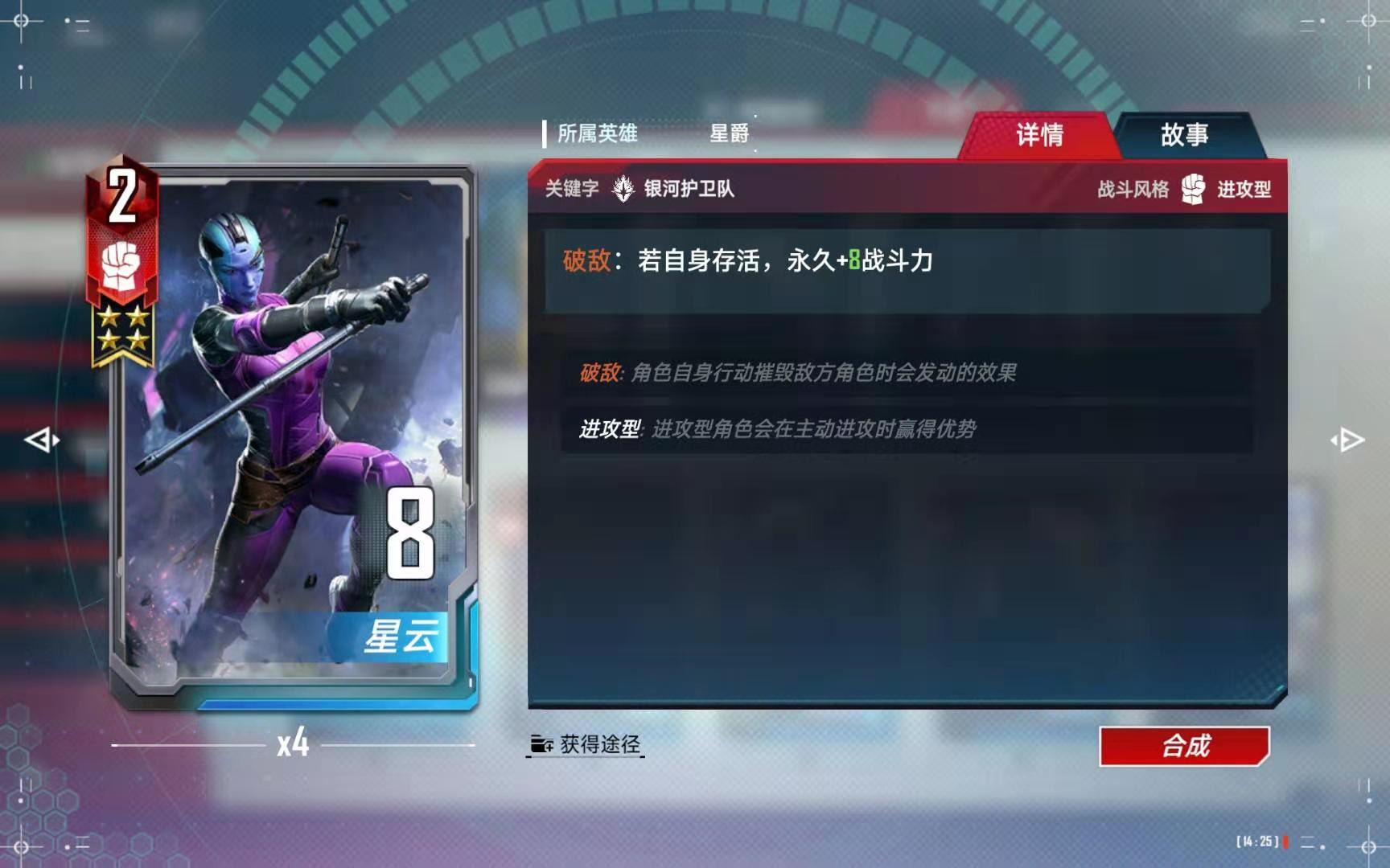 (1)星云:破敌:若自身存活,则永久加8战斗力(四星);
