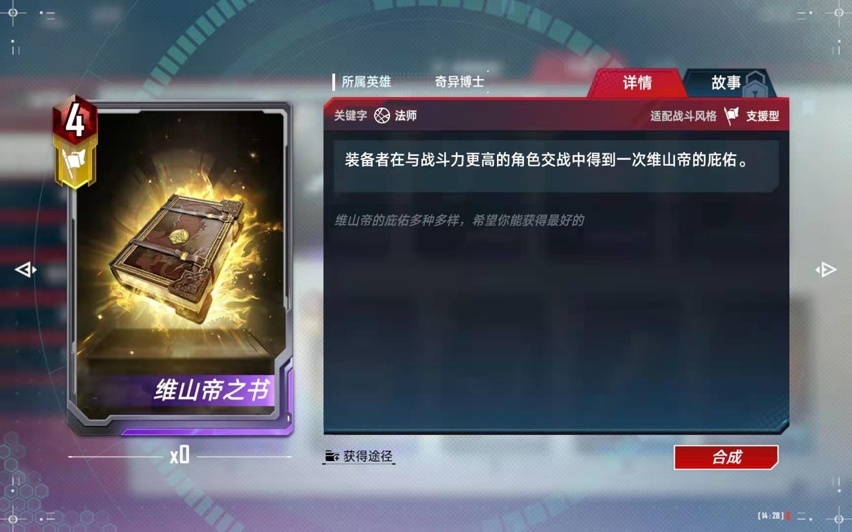 (8)维山帝之书:装备在于战斗力更高的角色交战中得到一次“维山帝的庇护”。