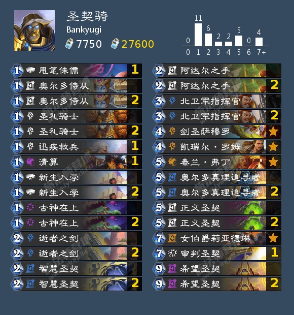 骑打术并不是理论上的优势对局,但是Bankyugi的lineup在被Alan ban掉法师之后确实没有能够处理术士的卡组,只能硬着头皮上骑士了,最终骑士也不负他所望地打出了比较高的上限,每回合都给术士很大的压力,最终拿下了这个对局。