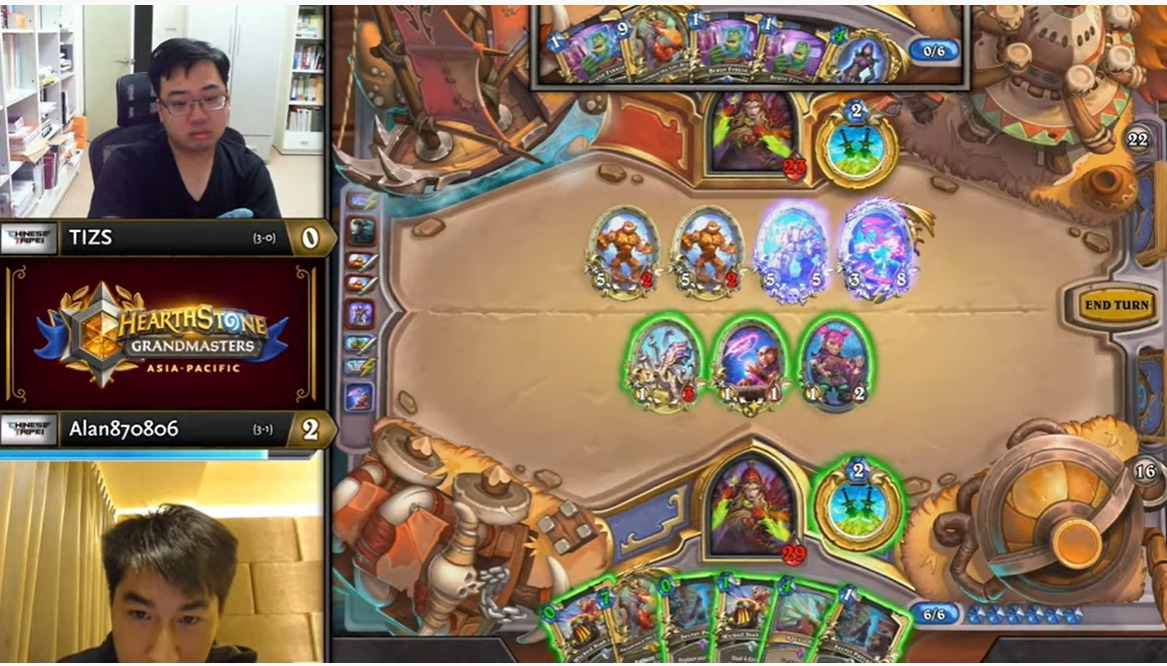 笔者选取了Alan870806在亚服半决赛中贼三穿中的第三局,这局是属于比较少见的盗贼内战在场面全失的情况下用两个回合打直伤斩杀对手,展现了Alan非常不错的大局观。Alan在上周的盗贼表现不可谓不惊艳,除了这局之外,Alan还贡献了两局比较经典的贼打牧劣势对局(对阵TIZS和Bankyugi),都是依靠节奏推死了牧师,有兴趣的同学也可以看一下。