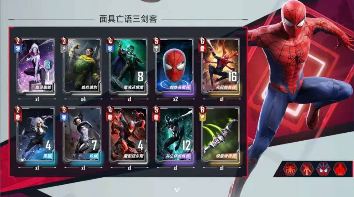 三、蜘蛛面具:2张,这张卡只需要两张,分别给场上两张泽莫戴上;