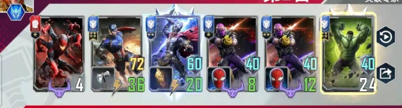 <1>在泽莫前面放上索尔和美队,防止泽莫直接被击杀,如果打万能刺杀流,则把泽莫放在最后,第六位置一般不会有刺杀。