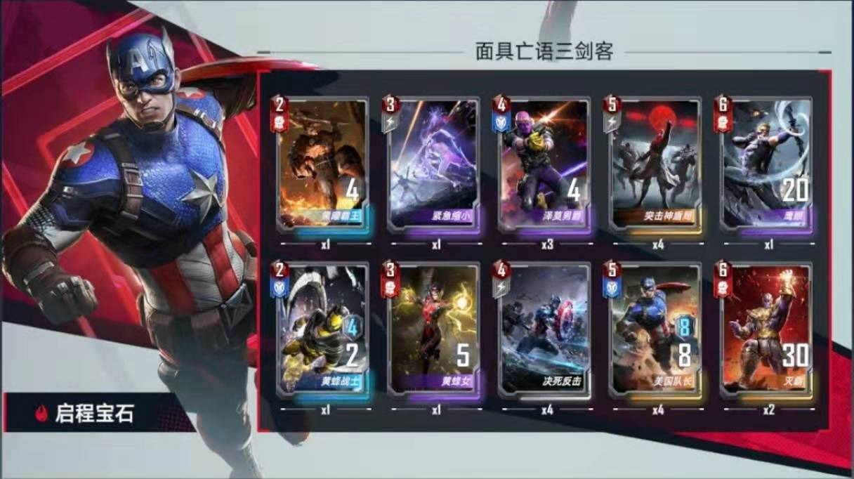 这套卡组除了【灭霸套娃流】外,是不怕任何卡组的,专治各种以三本左右为核心的卡组。本卡组在王者段实测4小时2000分,算是表现很出众的卡组了。