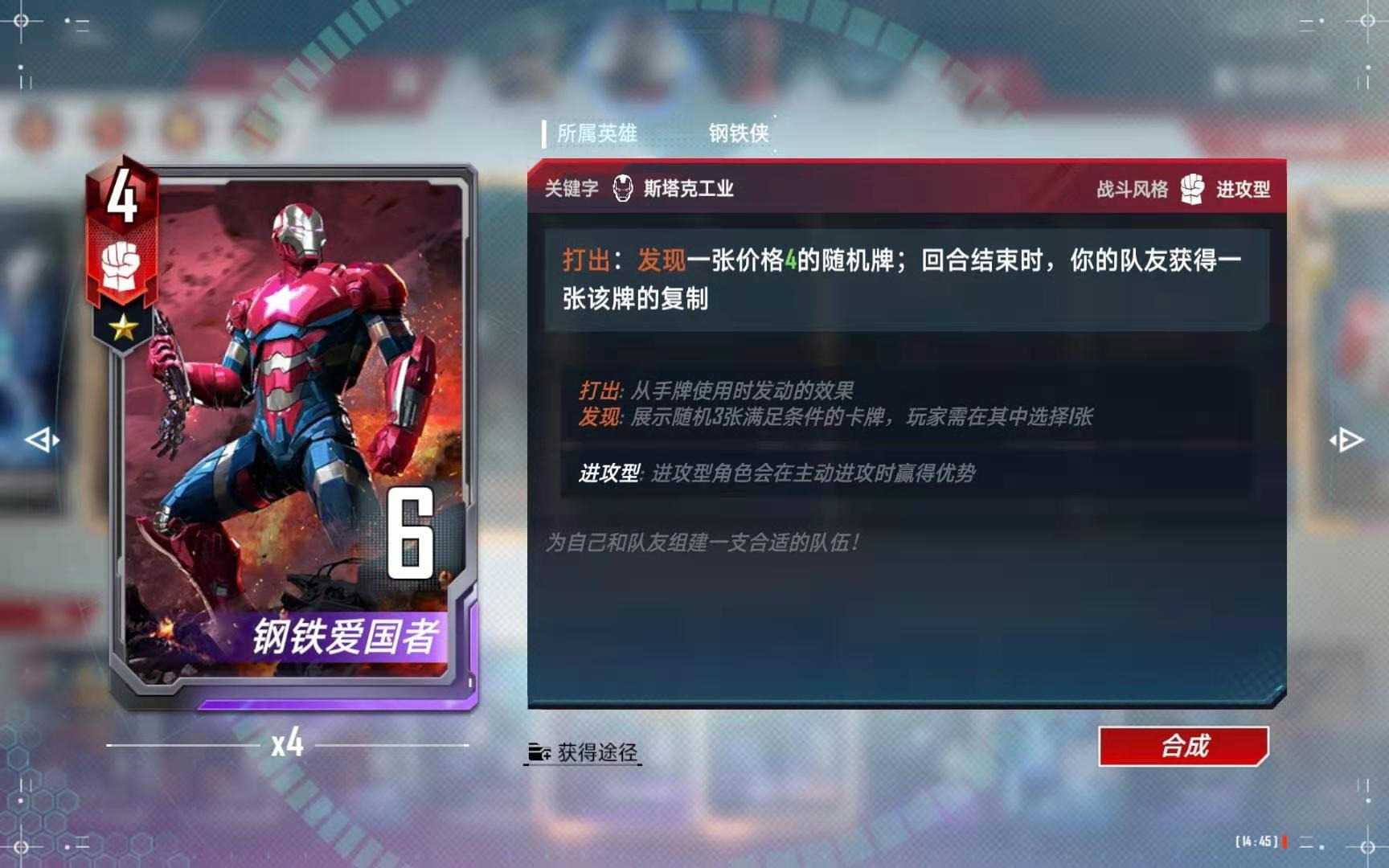 十、钢铁爱国者:1张,只需要一张,本卡必带,经常能找到泽莫或者托尼老师;