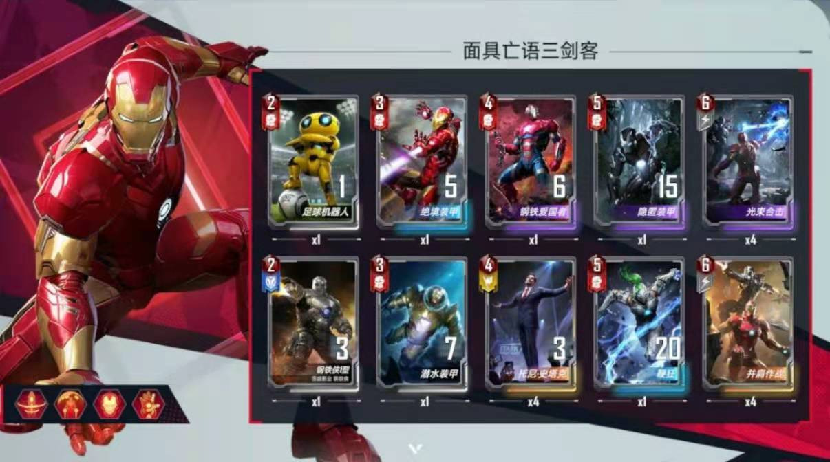 (1)钢铁侠:最新的版本,钢铁侠的二费随从只有“本泽马”(钢铁足球)和“初代钢铁侠”这两个选择,任何卡组都没有例外,一定不要选择其他的,这两个是经过上千场不断验证的结论;