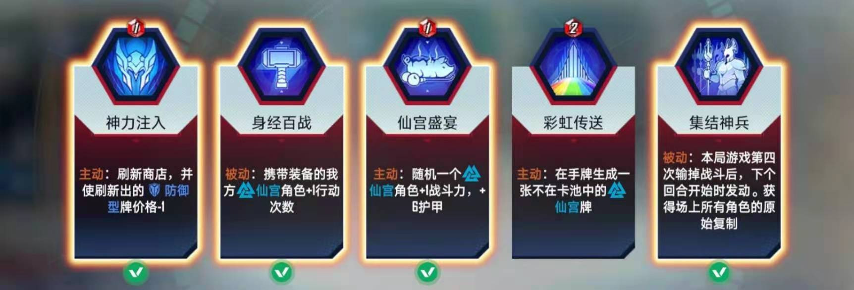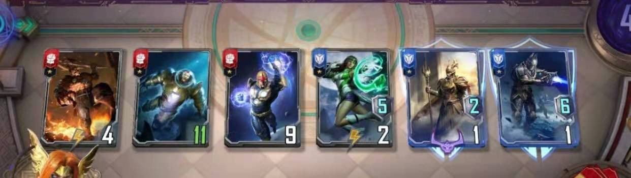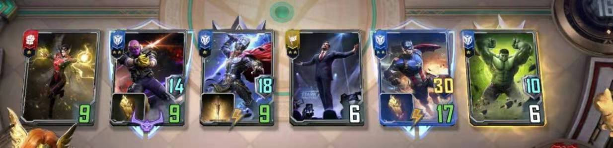 (4)从五级商店开始找泽莫、美队、绿浩克、索尔等关键角色牌,记住,本卡组一个重要的操作:在找到泽莫以前,绝对不买面具;在第打进前四以前,一般不买突击神盾;要优先把有限的宝石花在角色牌上。