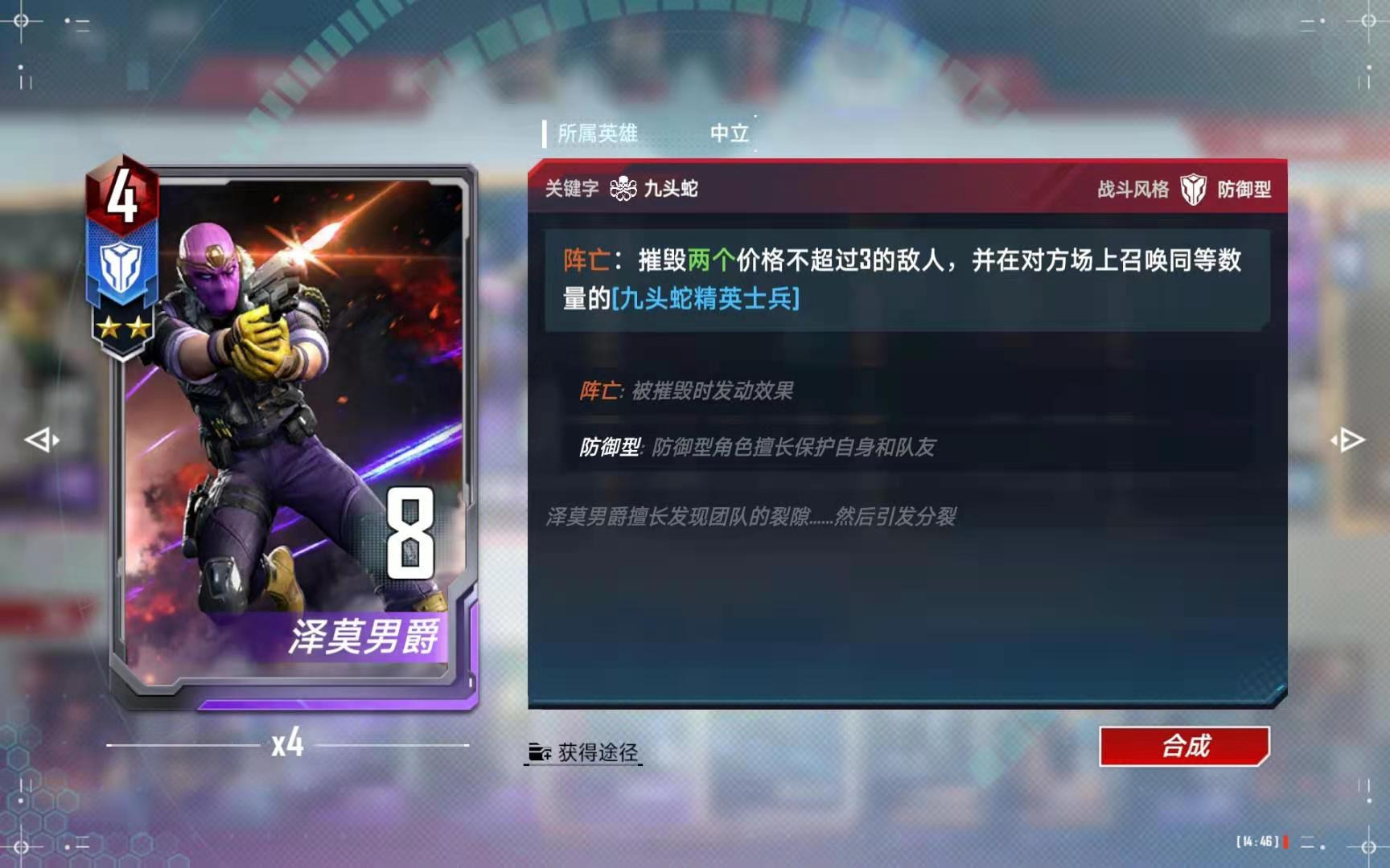 <3>一定不要使用四星泽莫,四星泽莫是打不过法师的高级阵容和复仇者阵容的,因为只能变身对面一张3费以上的牌,场上有两个泽莫的话,可以触发两次突击神盾局,打高级阵容才能有胜算;