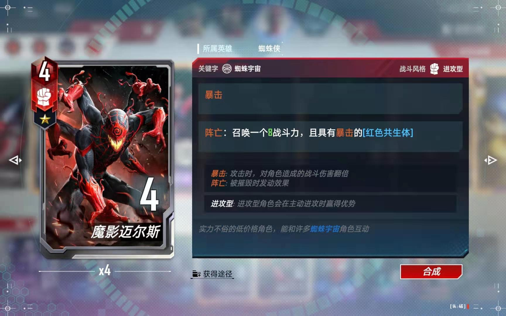 (1)针对非情报红的卡组,一般用以下阵容:使用魔影红蜘蛛作为触发泽莫亡语的工具人,以防止幽灵蜘蛛由于绿浩克加的护甲太高而无法送走;
