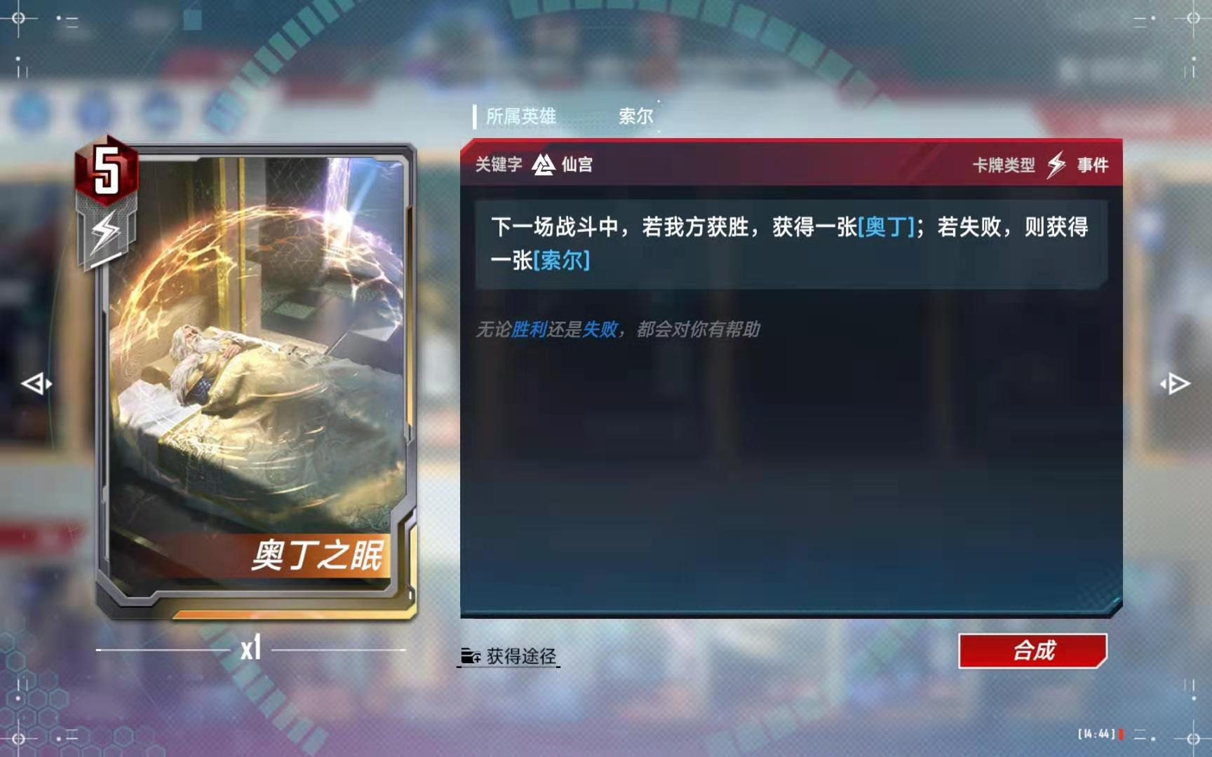 因为仙宫五级商店的选择比较灵活,场上也没有随从的位置,故而选择带一张“奥丁之眠”在自己可能输掉的某一回合使用,下一回合固定得一张索尔,其实是非常划算的,关键是自己判断的经验要足,有时候配合紧急缩小一起使用效果挺好。